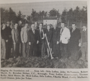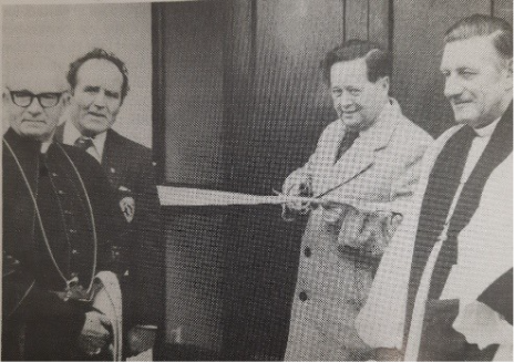 The GAA voice of the nation, Micheal Ó Hehir officially opened the Crossmolina Deel Rovers Community Centre in 1972, pictured with from left Most Rev. Th McDonnell, Dr. Mick Loftus and Rt. Rev. John Coote-Duggan