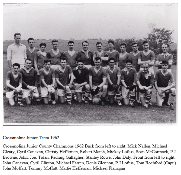 In 1962 Crossmolina gained another Junior Title, this time defeating The Neale 1-6 to 0-08, Captained by Tom Rochford.